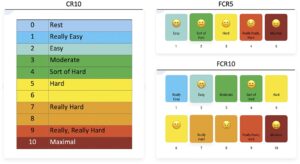 臉部RPE 量表 (FCR, Facial Rating of Perceived Exertion Scales),是結合了emoji表情及RPE的研究。