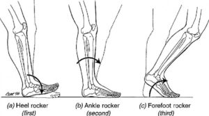 腳掌著地(foot contact)後到腳掌完全踩平地面(foot flat),再到前腳掌趾推蹬地面,需要啟動足部的三個轉動軸機制(Rocker)。若轉動軸失能,則可能會造成代償效應,整體動作也會不敏捷、不流暢。