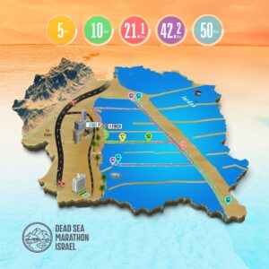 死海馬拉松不僅是全球海拔最低的馬拉松賽事 (全馬出發點為海拔負398公尺,全場最高點為負382公尺),更是移動的文明長廊,景觀結合自然風景及歷史遺跡,路線途經馬撒大要塞(Masada),終點設在恩戈地綠洲,這些地點與聖經有關。另外,結晶鹽灘路感的回饋較硬,遠方呼應的約旦山脈是較為明顯的風景,還有較為乾燥的天氣,是比賽另一挑戰。