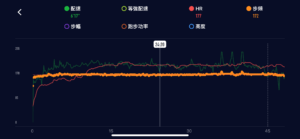 - 測量的信效度和穩定性有時候會失真,在分別配戴COROS及Garmin時,不只一次COROS會將穩定節奏的步頻視為心率,這可能導致系統計算訓練負荷時會出錯,同時心率也會在錯誤的區間內。舉出兩天輕鬆跑如下圖對照,Garmin心率在五分速左右是 137bpm,COROS 六分速左右 則是 177bpm (顯然不合理)。